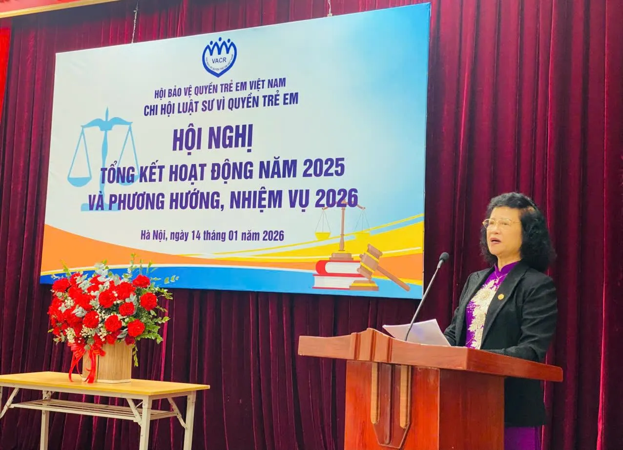 Ngày 14/1/2026, tại Hà Nội Chi hội Luật sư vì quyền trẻ em thuộc Hội Bảo vệ quyền trẻ em Việt Nam đã tổ chức Hội nghị tổng kết hoạt động năm 2025 và phương hướng nhiệm vụ năm 2026.
