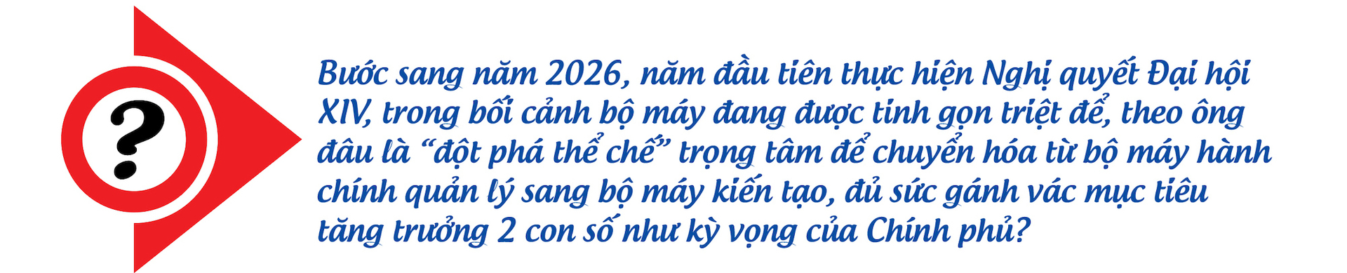 Năm 2026, Tổng Bí thư đã chỉ rõ, đây là năm “hành động đột phá”. Theo tôi, đột phá thể chế trước hết phải bắt đầu từ định nghĩa lại vai trò của Nhà nước.