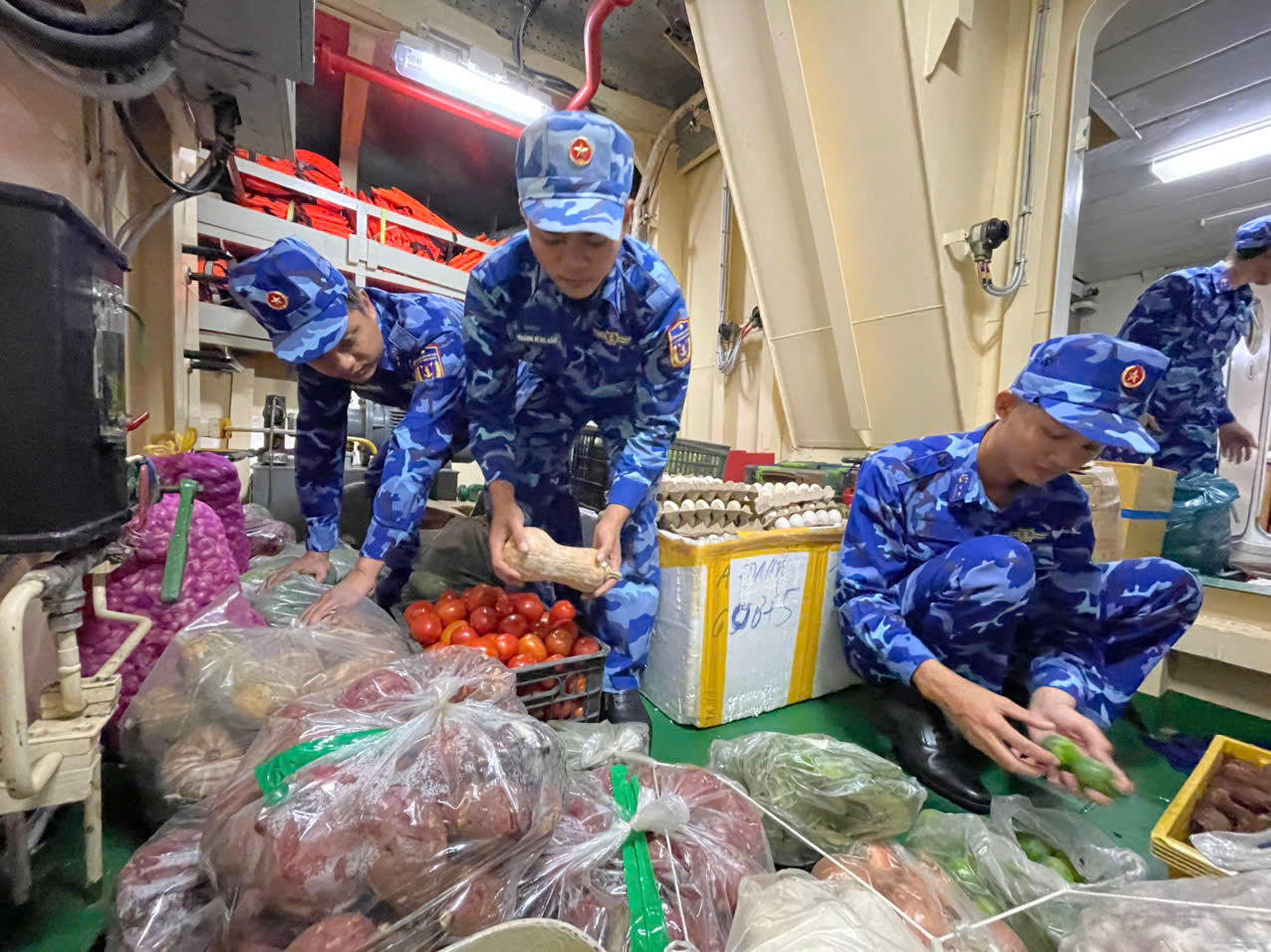 Lương thực, thực phẩm, nhu yếu phẩm phục vụ sinh hoạt thường ngày và trong dịp Tết được chuẩn bị đầy đủ; các nguyên liệu gói bánh chưng, bánh kẹo ngày Xuân được sắp xếp khoa học, bảo đảm để cán bộ, chiến sĩ vừa hoàn thành nhiệm vụ, vừa đón Tết trên biển trong không khí đầm ấm, nghĩa tình.