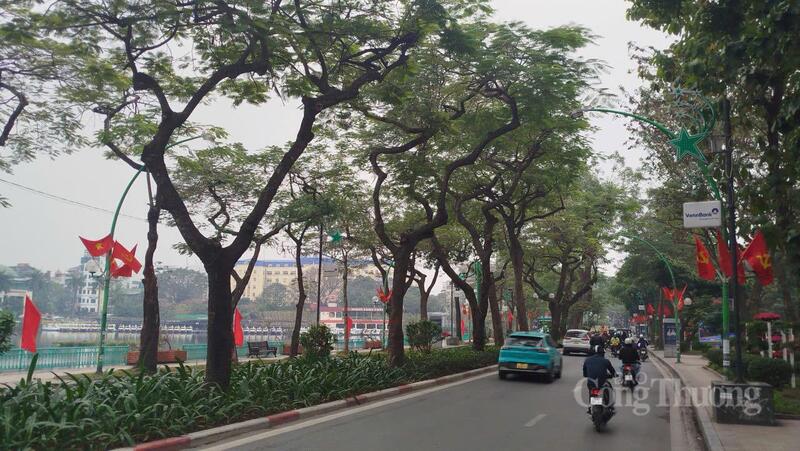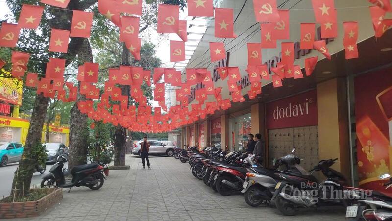 Theo ghi nhận của phóng viên, nhiều tuyến phố khu vực trung tâm TP. Hà Nội như: Hùng Vương, Độc Lập, Đinh Tiên Hoàng, Lê Thái Tổ, Điện Biên Phủ, Thanh Niên… sắc đỏ của cờ Tổ quốc, cờ Đảng nổi bật trên nền phố phường khang trang.