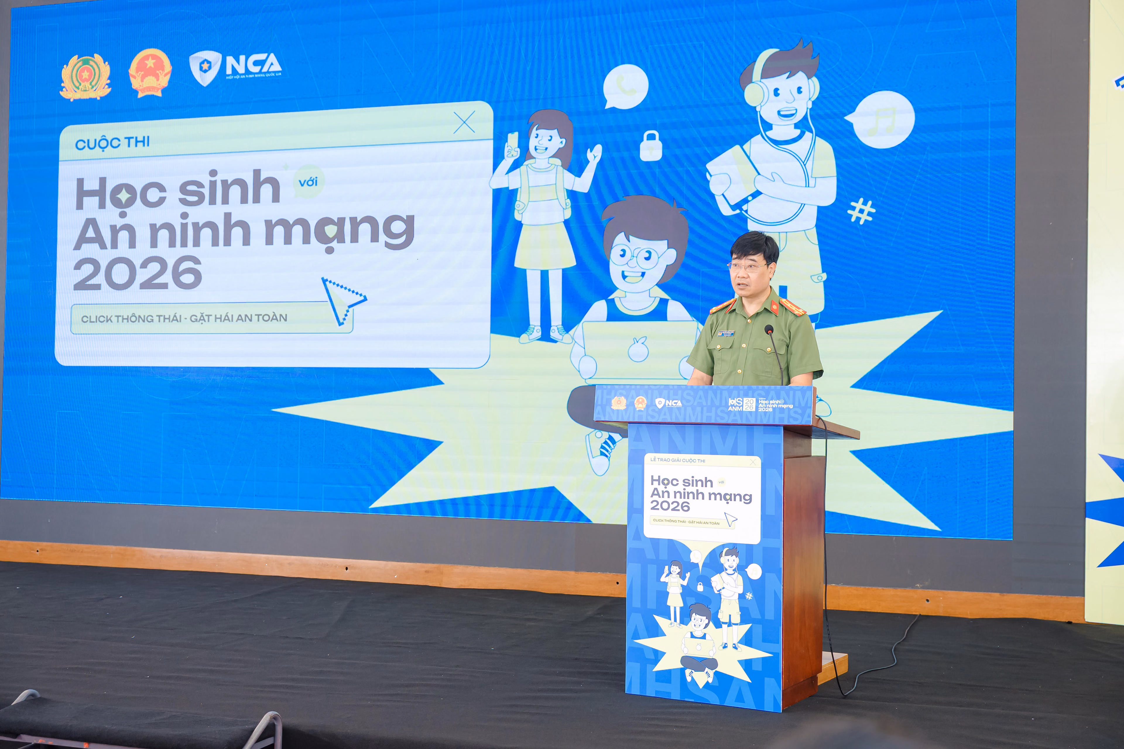 Phát biểu tại buổi lễ, Trung tướng Lê Xuân Minh – Cục trưởng Cục An ninh mạng và phòng, chống tội phạm sử dụng công nghệ cao (A05 – Bộ Công an), Phó Chủ tịch điều hành Hiệp hội An ninh mạng quốc gia nhấn mạnh: trong kỷ nguyên số, không gian mạng đã trở thành môi trường phát triển quan trọng của thế hệ trẻ, song cũng đặt ra nhiều thách thức đối với công tác bảo đảm an ninh, an toàn thông tin, đặc biệt là các nguy cơ xâm hại, lừa đảo, tác động tiêu cực đến trẻ em. Vì vậy, việc tăng cường giáo dục, trang bị kỹ năng và nâng cao nhận thức cho học sinh là yêu cầu cấp thiết.