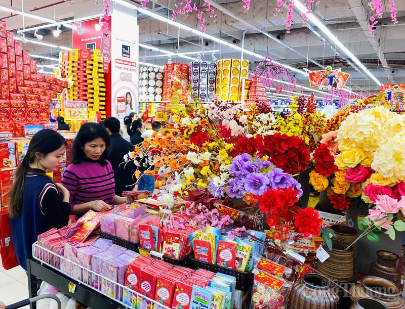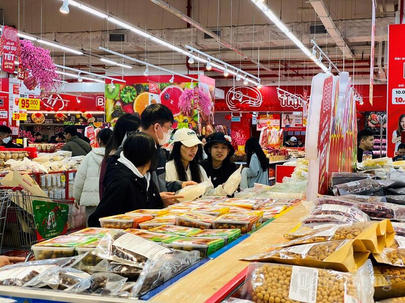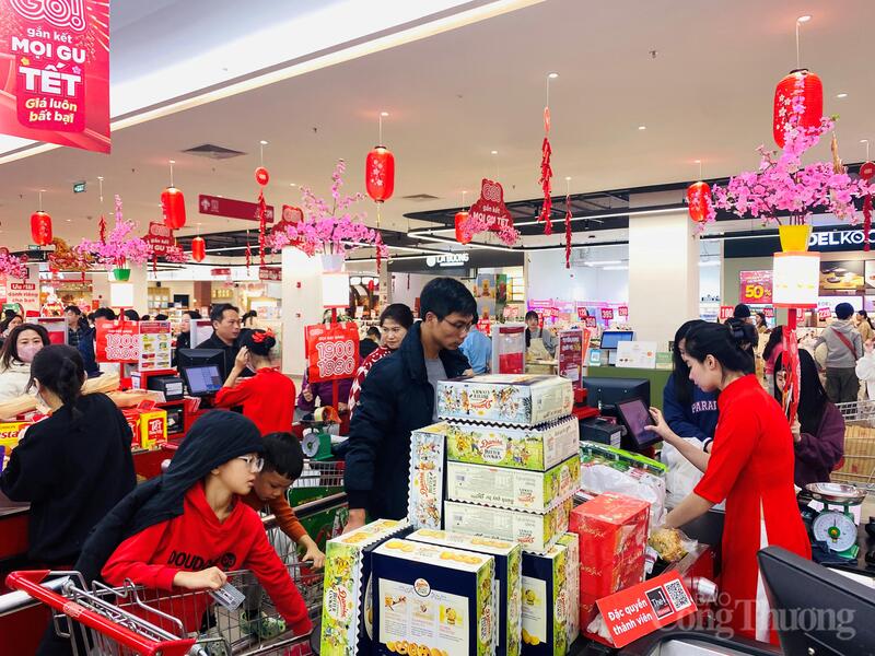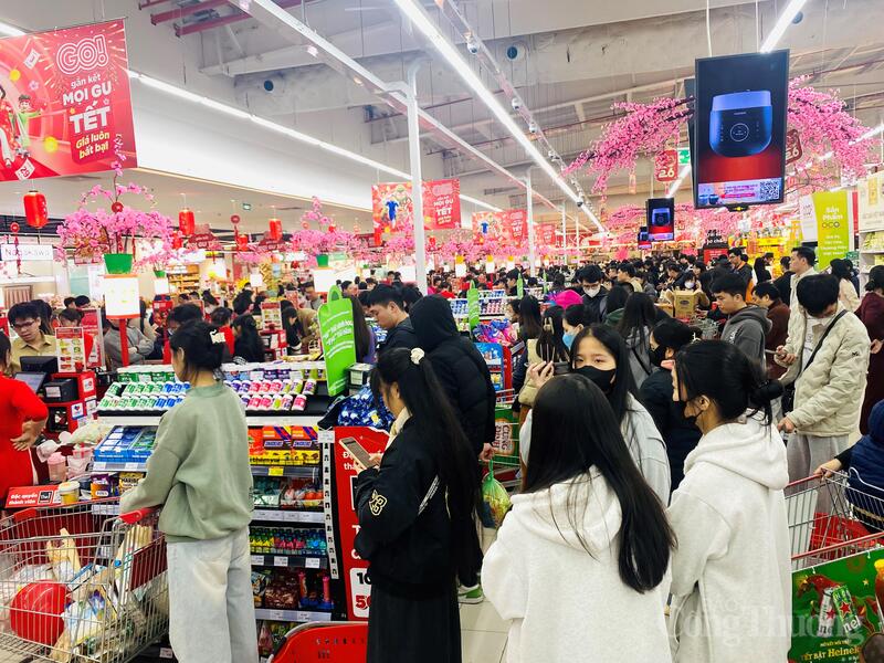 Cùng với không khí Tết đến sớm, lượng khách đến mua sắm tăng rõ rệt so với ngày thường. Nhiều siêu thị đông người ngay từ khi mở cửa, đến chiều tối các quầy thanh toán thường xuyên quá tải, khách xếp hàng dài chờ đến lượt.