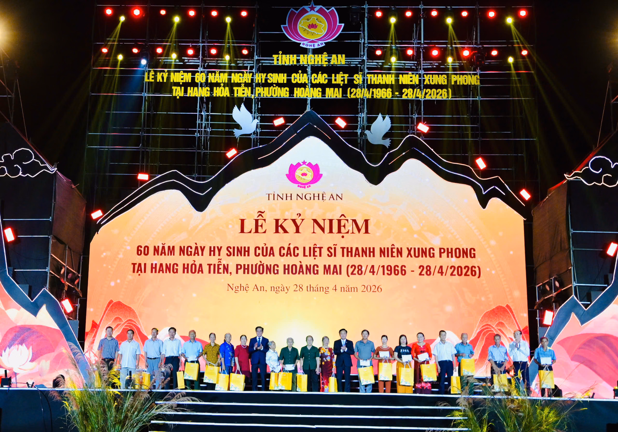 Tối 28/4/2026, tại Khu di tích Hang Hoả Tiễn và Nghĩa trang liệt sĩ đường sắt, phường Hoàng Mai, UBND tỉnh Nghệ An long trọng tổ chức Lễ kỷ niệm 60 năm ngày hy sinh của 33 liệt sĩ Thanh niên xung phong tại Hang Hỏa Tiễn (28/4/1966 – 28/4/2026).