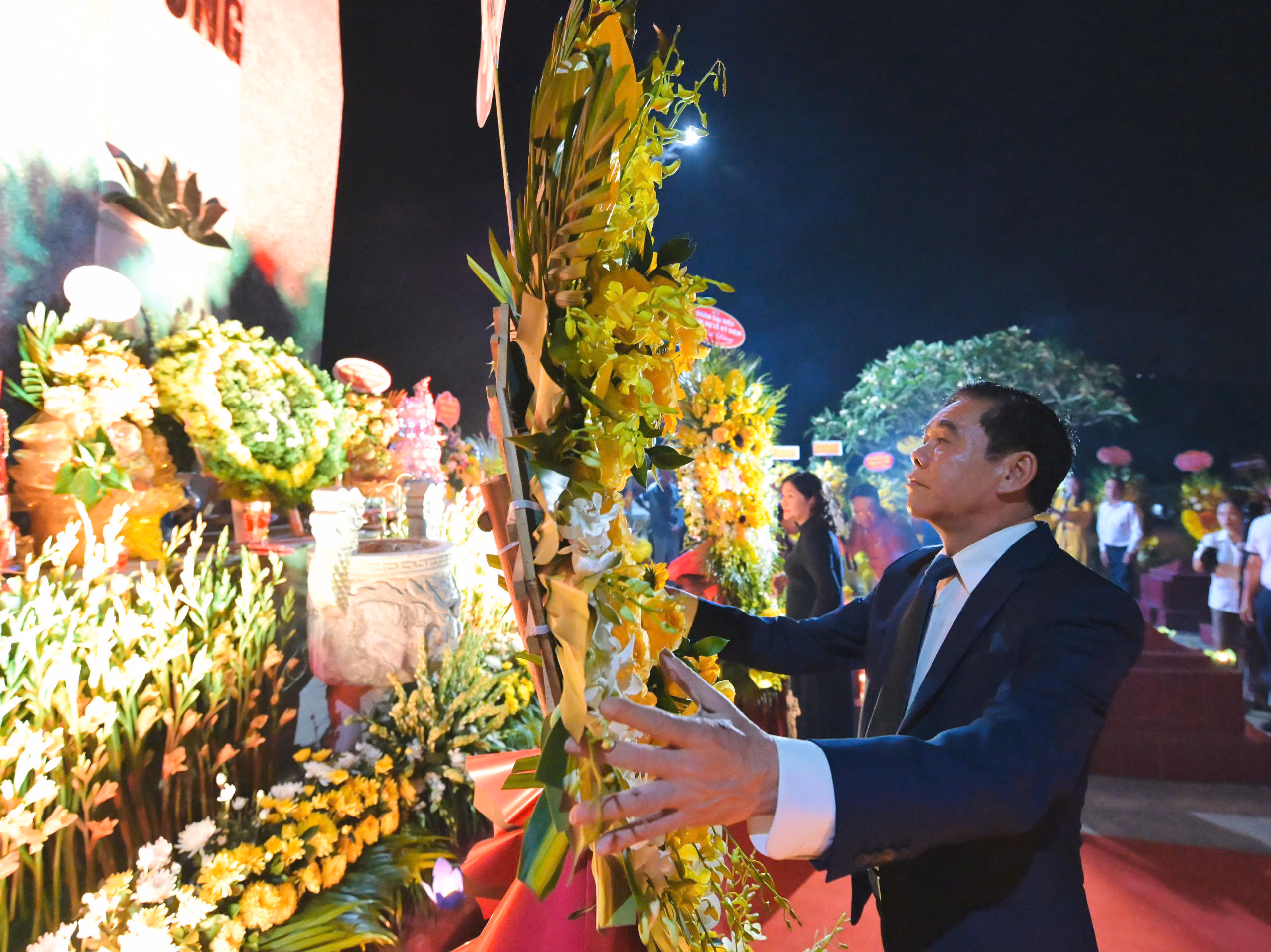Chủ tịch UBND tỉnh Nghệ An Võ Trọng Hải và các đại biểu dâng hương, dâng hoa tưởng niệm tại Nghĩa trang liệt sĩ đường sắt. Ảnh: Võ Khánh