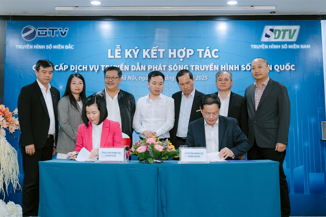 Chiều ngày 16/12/2025, tại Hà Nội, Công ty Cổ phần Truyền hình Số Miền Bắc (DTV) và Công ty TNHH Truyền hình Kỹ thuật Số Miền Nam (SDTV) đã tổ chức Lễ ký kết thỏa thuận hợp tác triển khai dịch vụ truyền dẫn, phát sóng truyền hình số mặt đất trên phạm vi toàn quốc. Buổi lễ đánh dấu một cột mốc quan trọng trong quá trình liên kết, bổ trợ thế mạnh giữa hai doanh nghiệp hoạt động trong lĩnh vực truyền dẫn – phát sóng truyền hình số mặt đất, hướng tới mục tiêu mở rộng vùng phủ sóng và nâng cao hiệu quả khai thác hạ tầng kỹ thuật.