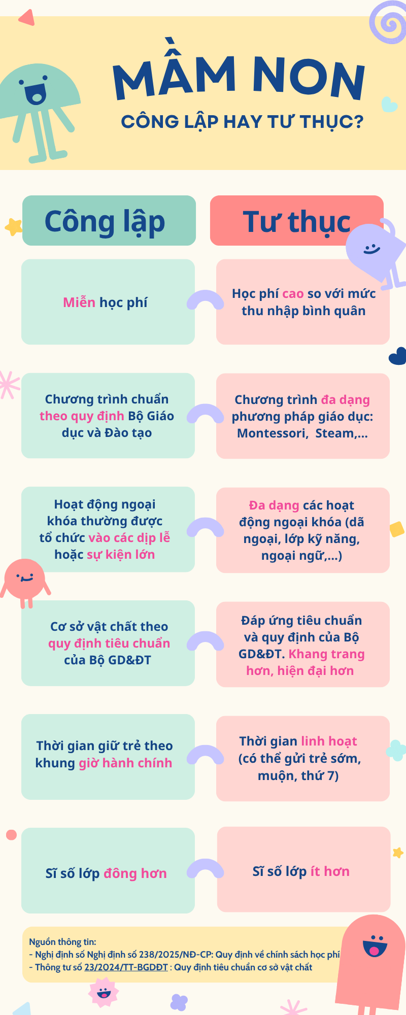 Trong hành trình nuôi dưỡng và giáo dục con trẻ, việc lựa chọn giữa trường mầm non công lập và tư thục luôn là một câu hỏi khiến nhiều phụ huynh trăn trở.