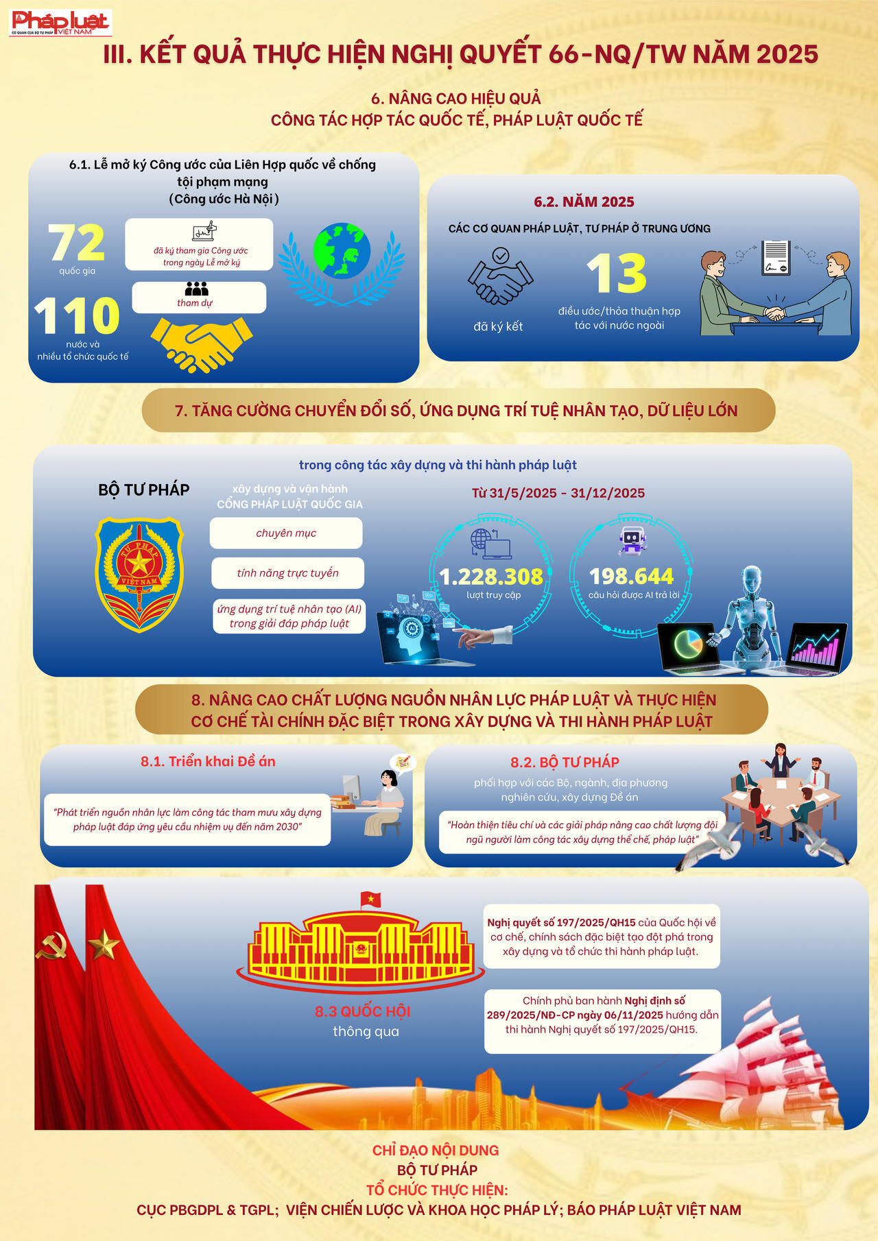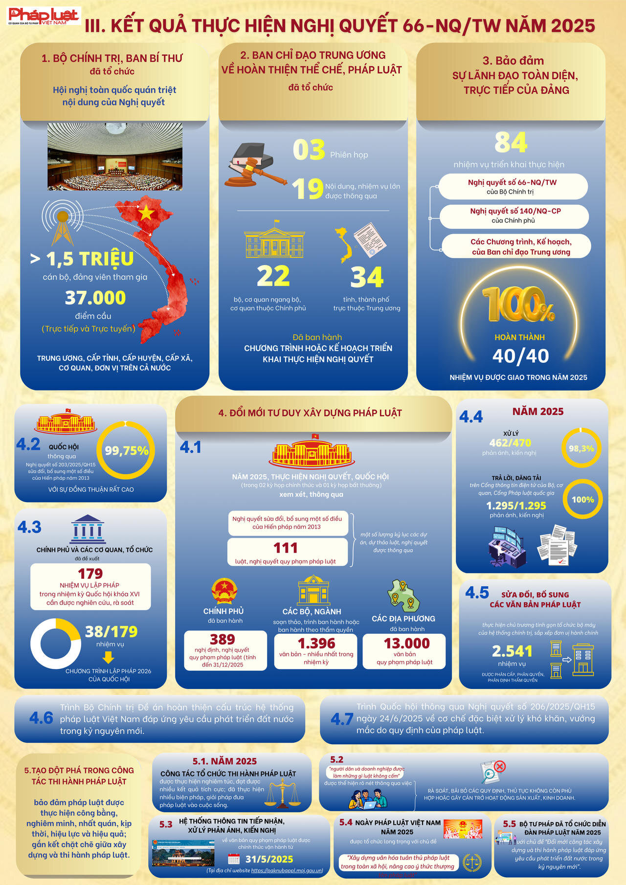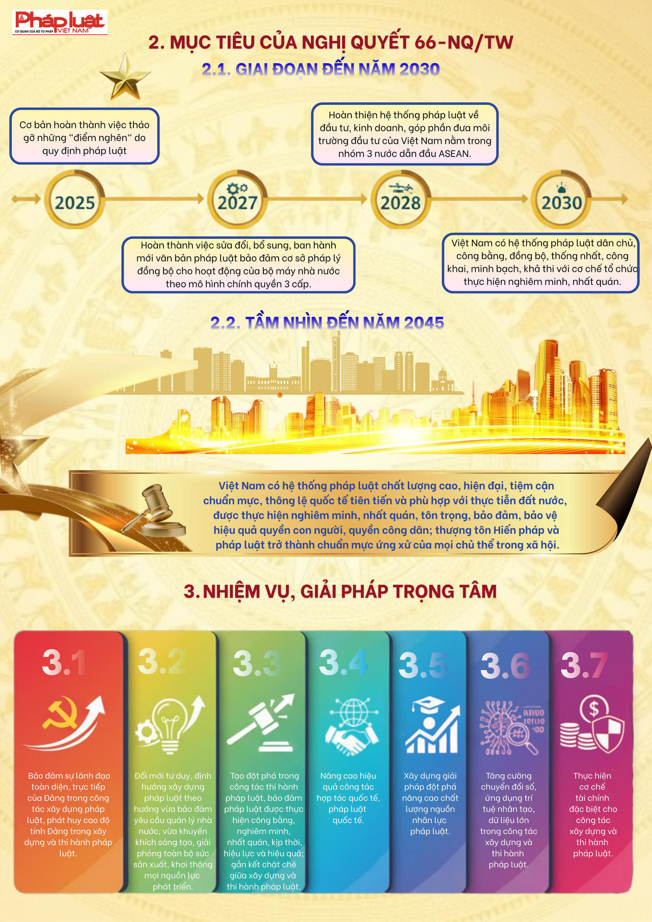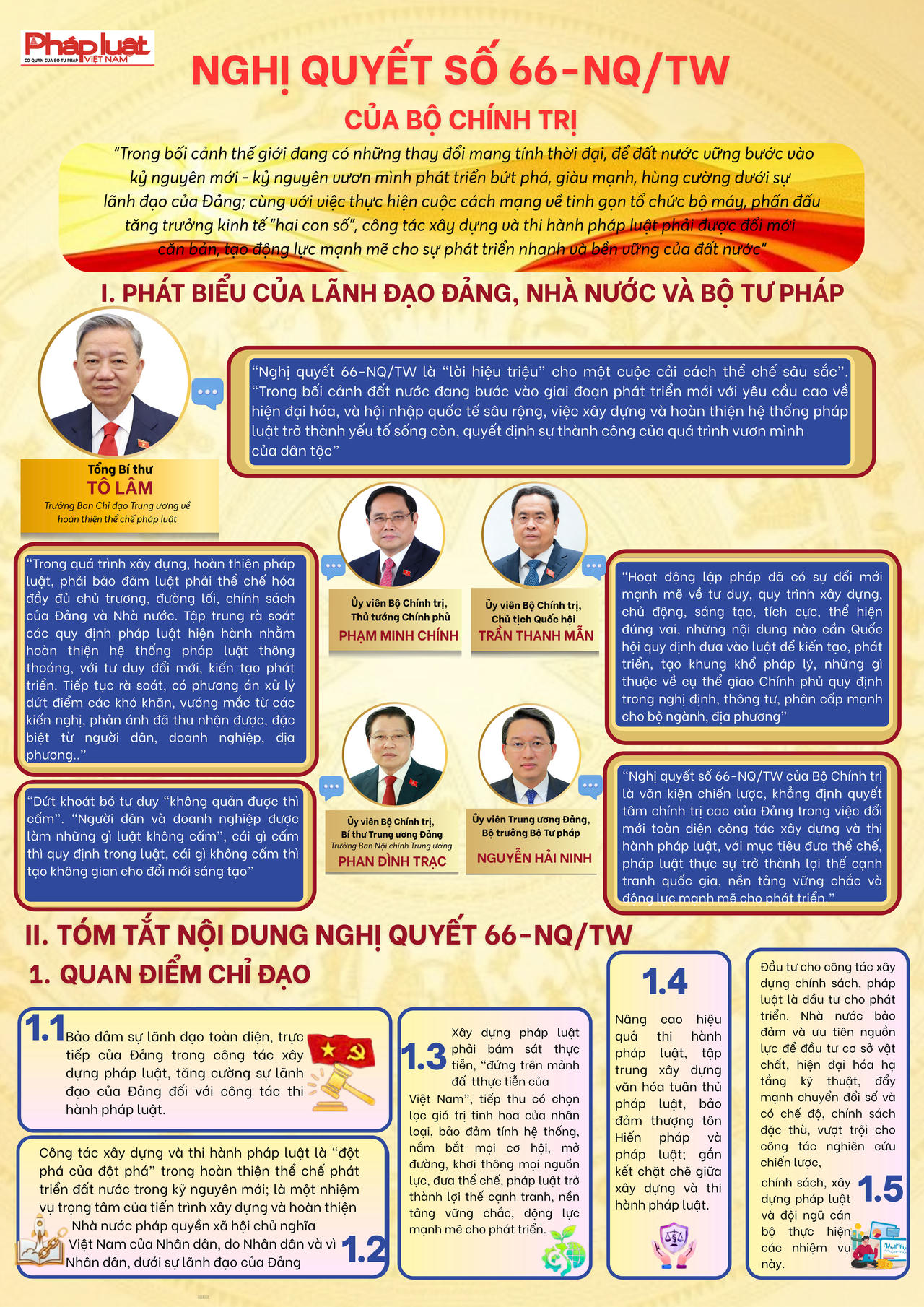 “Trong bối cảnh thế giới đang có những thay đổi mang tính thời đại, để đất nước vững bước vào kỷ nguyên mới – kỷ nguyên vươn mình phát triển bứt phá, giàu mạnh, hùng cường dưới sự lãnh đạo của Đảng; cùng với việc thực hiện cuộc cách mạng về tinh gọn tổ chức bộ máy, phấn đấu tăng trưởng kinh tế “hai con số”, công tác xây dựng và thi hành pháp luật phải được đổi mới căn bản, tạo động lực mạnh mẽ cho sự phát triển nhanh và bền vững của đất nước”…