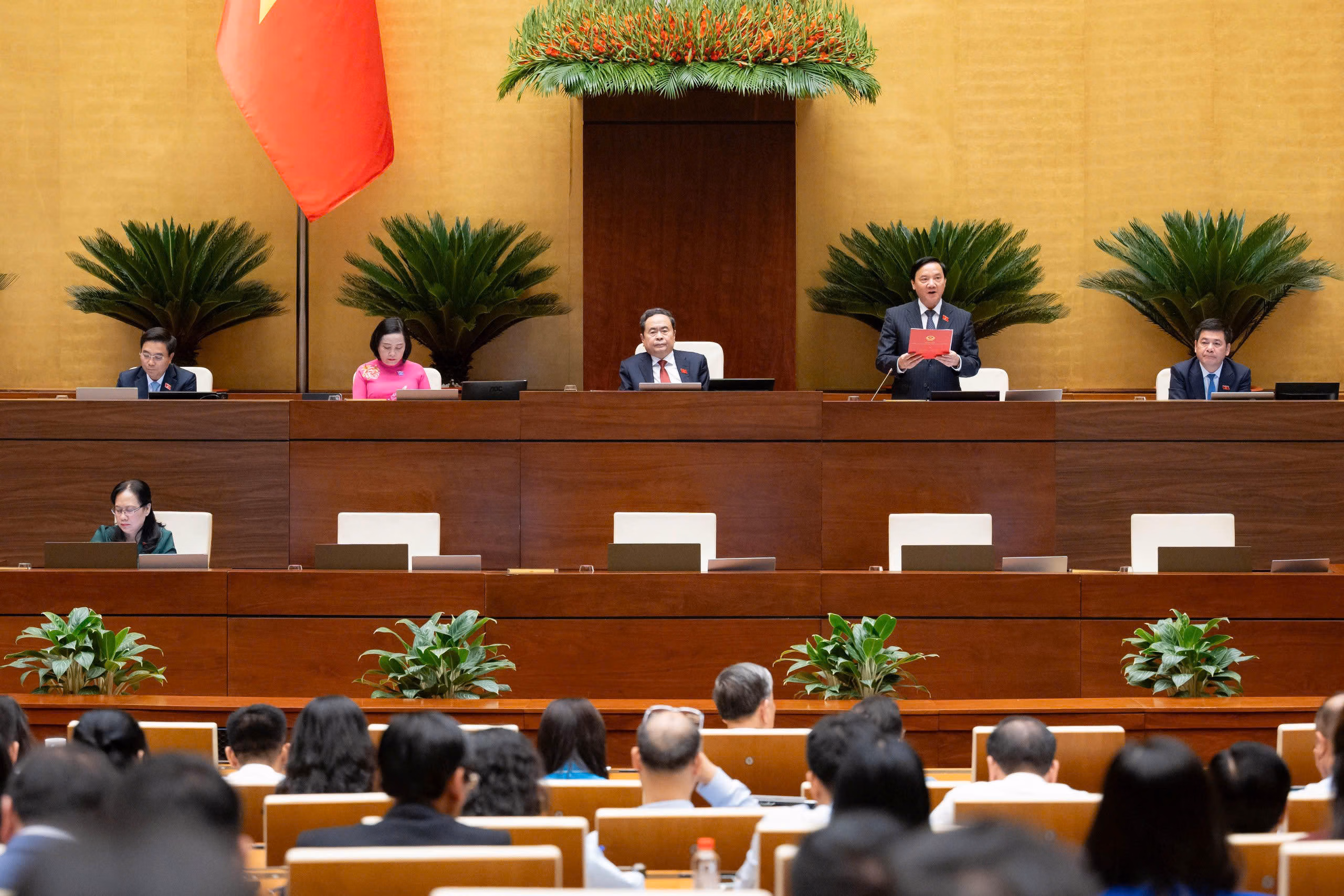 Bộ trưởng Hoàng Thanh Tùng báo cáo tiếp thu, giải trình các dự án luật, nghị quyết. (Ảnh trong bài: quochoi.vn)
