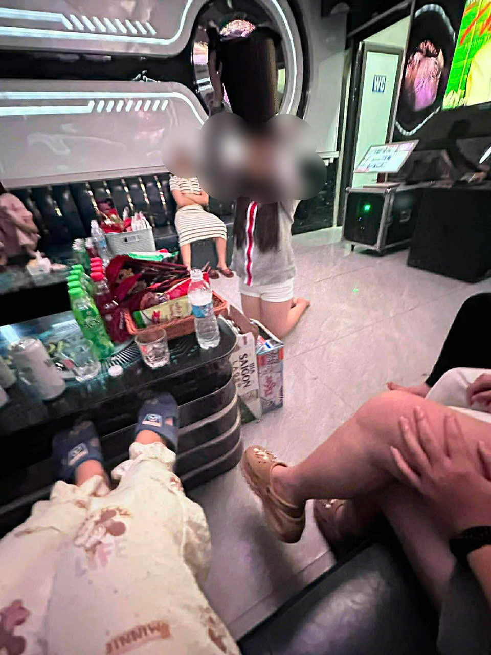Cháu N.H.A bị bắt quỳ xuống đất và bị một số đối tượng hành hung tại quán karaoke Sing KTV. Ảnh: Gia đình cung cấp