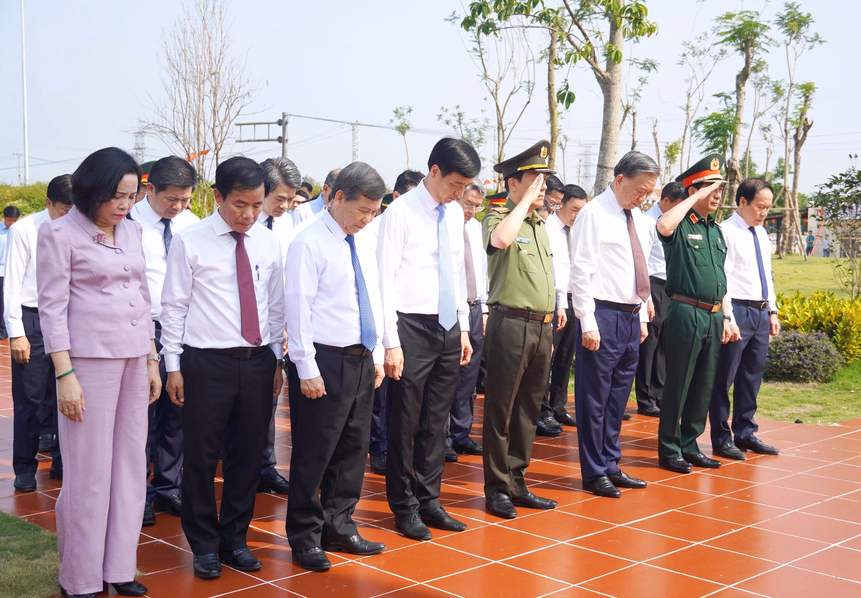 Tổng Bí thư, Chủ tịch nước Tô Lâm cùng các đồng chí lãnh đạo Đảng, Nhà nước dành phút mặc niệm các Anh hùng liệt sĩ tại Khu di tích lịch sử quốc gia đặc biệt Bến phà Gianh.