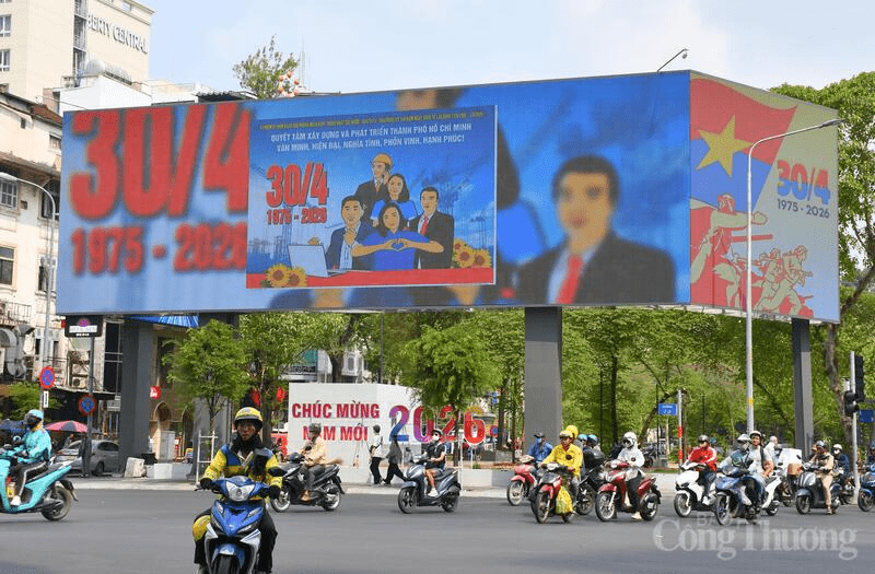 Theo ghi nhận của phóng viên Báo Công Thương, nhiều tuyến đường trung tâm và cửa ngõ Thành phố như Lê Duẩn, Nam Kỳ Khởi Nghĩa, Nguyễn Văn Trỗi, Đồng Khởi, Nguyễn Huệ, Pasteur, Nguyễn Thị Minh Khai, Đinh Tiên Hoàng, Xô Viết Nghệ Tĩnh, Điện Biên Phủ, Quang Trung, Tô Ký, Bạch Đằng… được trang hoàng rực rỡ. Những dải cờ hoa nối dài, các cụm pano lớn tái hiện dấu mốc lịch sử 30/4 hào hùng, hệ thống màn hình LED trình chiếu hình ảnh đất nước đổi mới, Thành phố phát triển hiện đại đã tạo nên không gian lễ hội sôi động, trang nghiêm nhưng gần gũi.