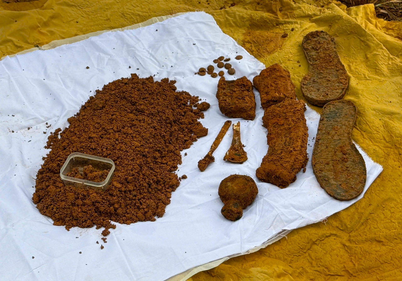 Từ ngày 9/1 đến nay, Đội 584 phát hiện, quy tập năm hài cốt liệt sĩ trong rừng tràm của người dân, nằm dưới lớp đất, kèm nhiều di vật như đế giày, hộp tiếp đạn.